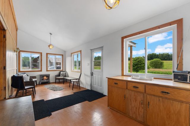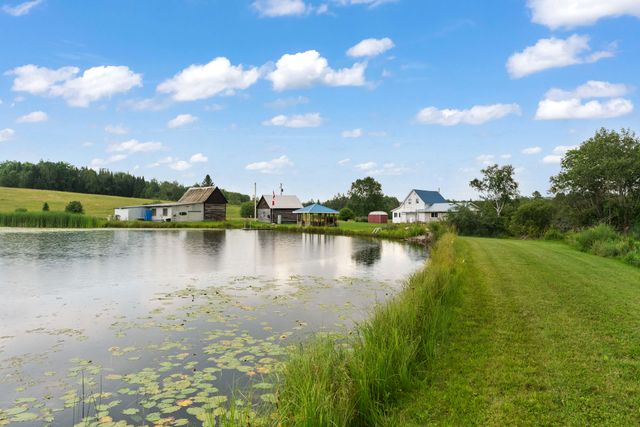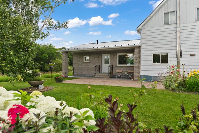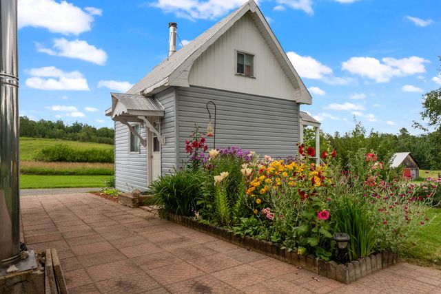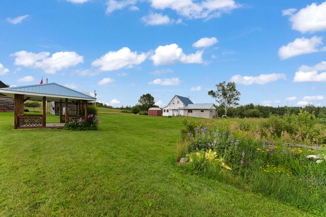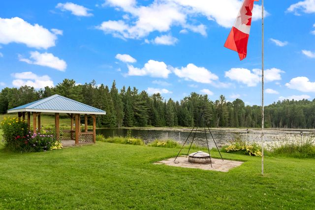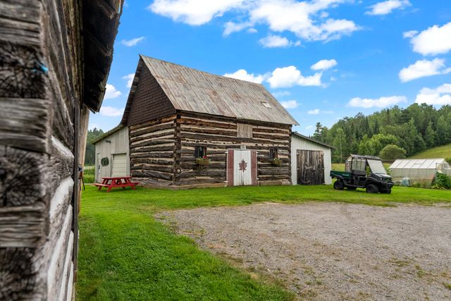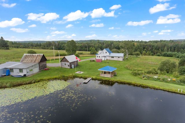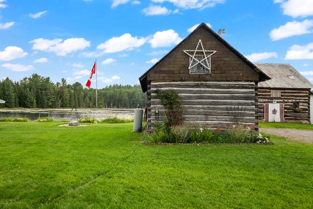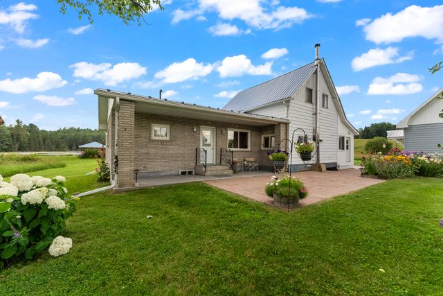 This 197 Acre property will impress if you are looking for that retreat that has it all. This older 4 bedroom home with newer brick addition 1997 with Livingroom, large primary bedroom that has walk in closet and ensuite washroom on the main floor. Eat in country kitchen. Attached sunroom with gas fireplace overlooking the countryside. The breathtaking views of the small lake are so lovely. Many gardens surround you while sitting on the wrap around patio with covered area. Many log outbuilding with power for the hobbiest or for animals.197 acre property has maple, cedar and pine trees. Gorgeous covered gazebo overlooking the lake. Detached building near main home 20' x 16' with upper sleep loft is for overflow family or would make a great hobby room with antique cookstove. Excellent place for a growing family or just Recreational.