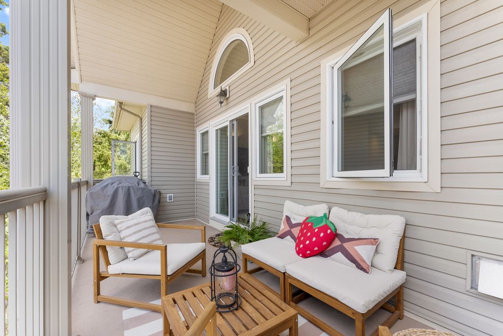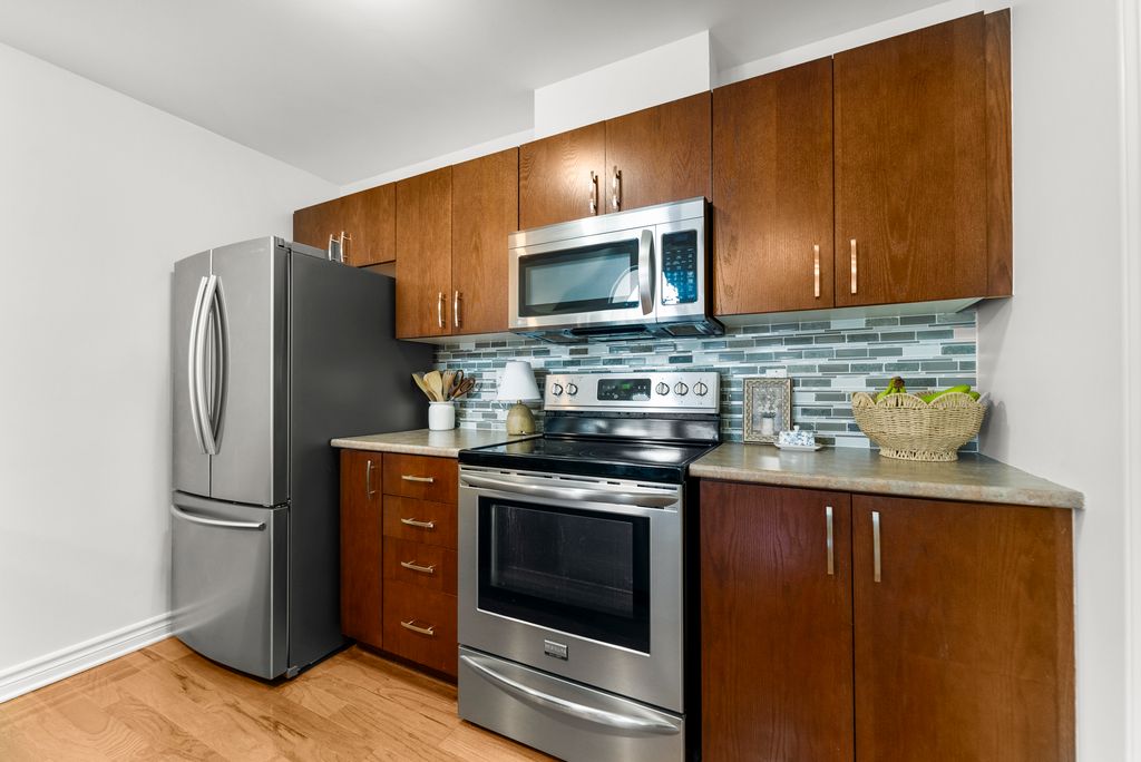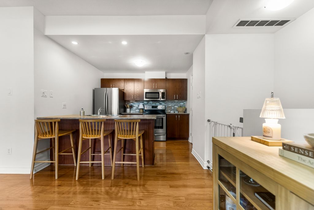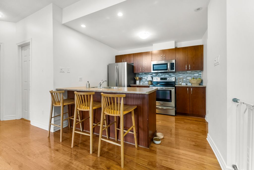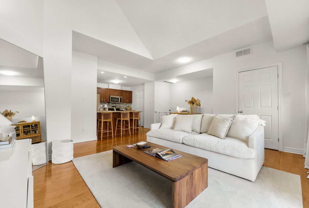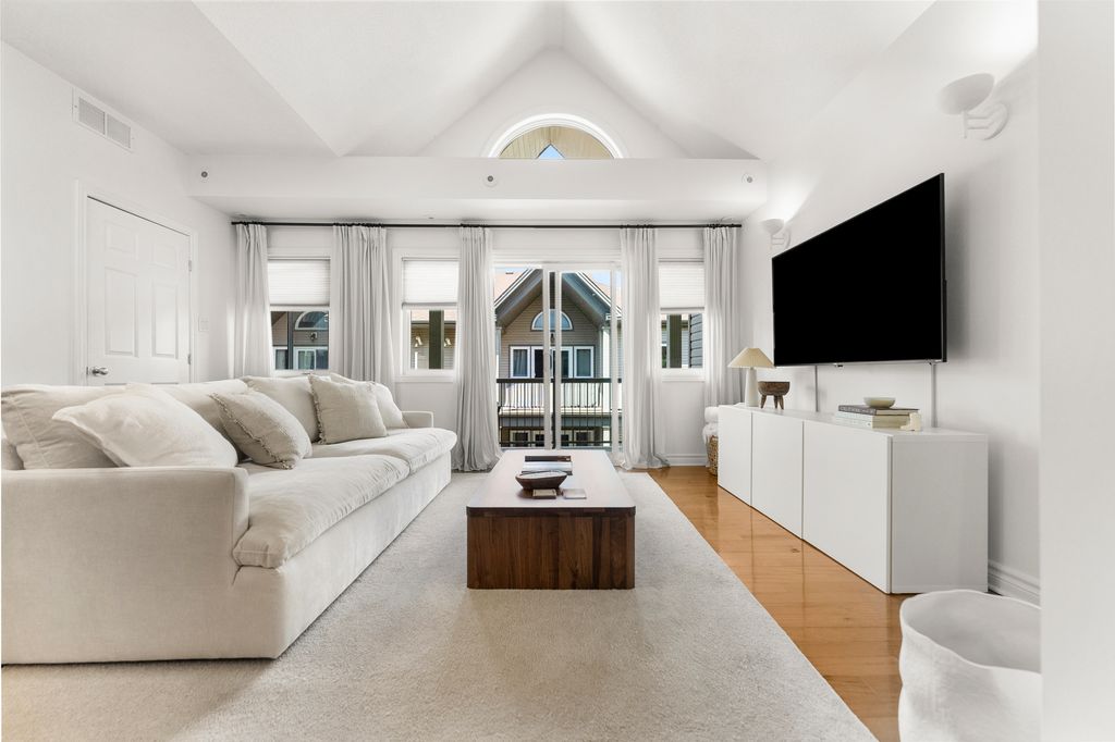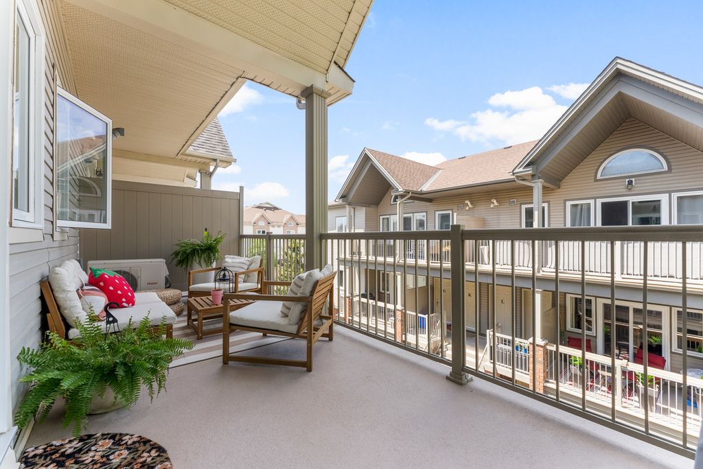 Welcome to carefree condo living in the highly sought-after community of Jackson Trails! This beautifully maintained upper unit is flooded with natural light thanks to its abundance of windows and soaring vaulted ceilings. With no rear neighbours and views of the trees, it offers a peaceful retreat just steps from all the amenities you need. The open-concept living and dining area features a full wall of windows, creating an airy, sun-filled space perfect for relaxing or entertaining. Rich hardwood flooring flows throughout the main living areas and both bedrooms, adding warmth and elegance. The kitchen is both stylish and functional, with stainless steel appliances, a sleek glass tile backsplash, a breakfast bar for casual dining, and convenient in-unit laundry access. The primary bedroom is a serene escape with a generous walk-in closet and a patio door that opens to tranquil treetop views, no rear neighbours to disturb your privacy. The second bedroom is also a great size, making it ideal for guests, a home office, or a cozy retreat. The large main bathroom offers both comfort and style, featuring a separate soaker tub and a walk-in shower. Off the living room, step out onto your private balcony, the perfect spot for morning coffee or evening unwinding. Located just minutes from shopping, restaurants, banking, schools, and transit, this home offers the best of both comfort and convenience. Whether you're a first-time buyer, downsizer, or investor, this bright and spacious unit checks all the boxes. Don't miss this opportunity to own in one of Stittsville's most popular neighbourhoods!
