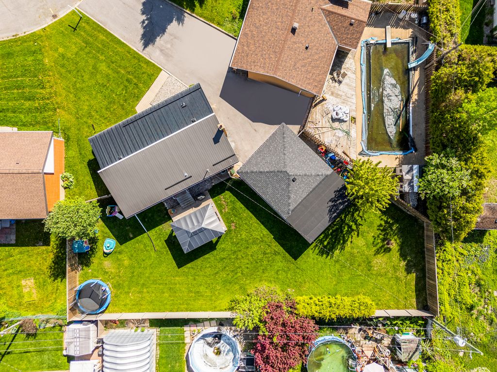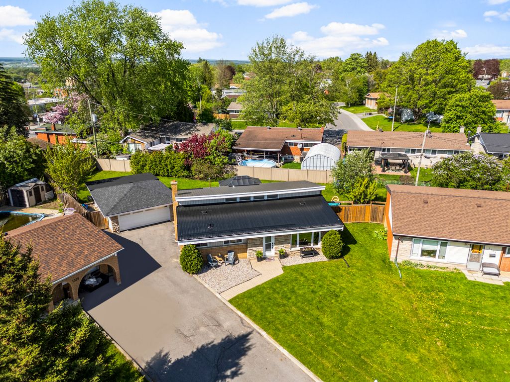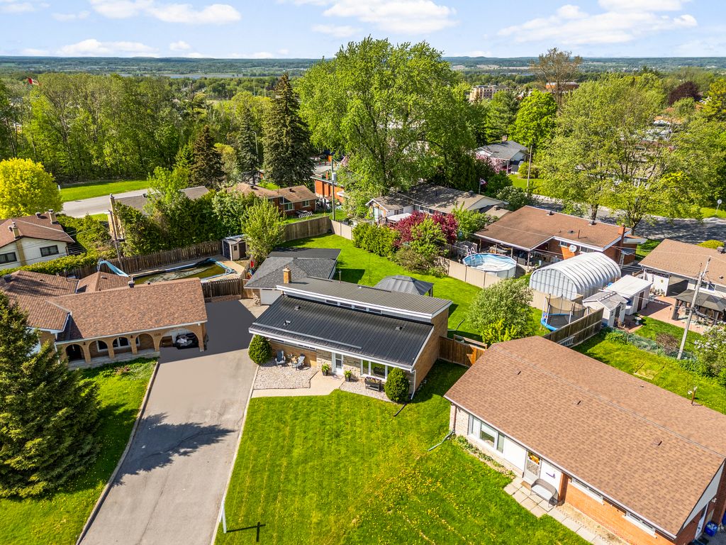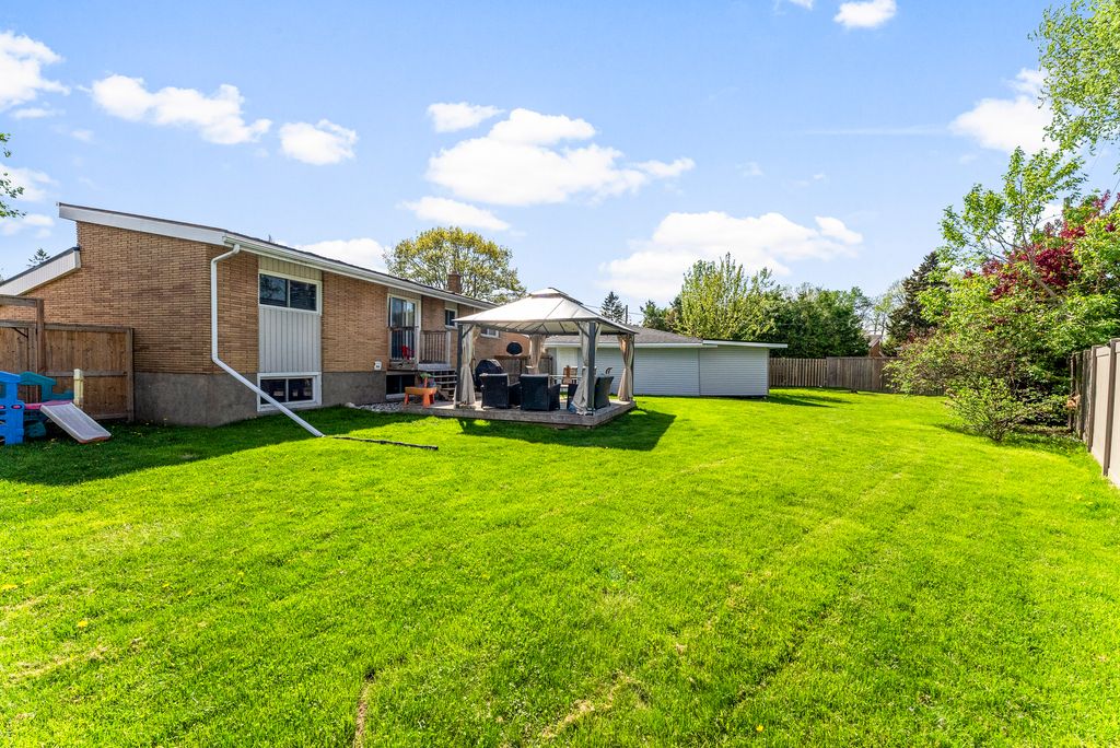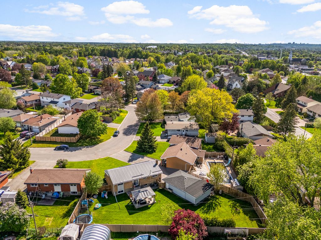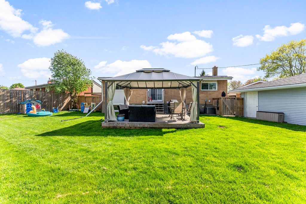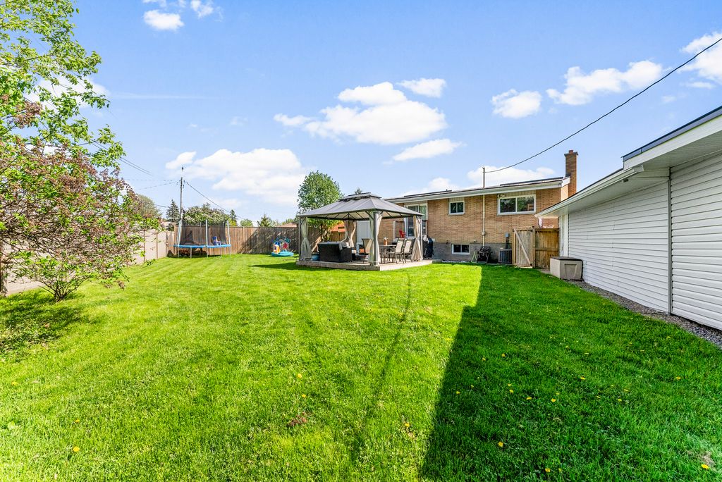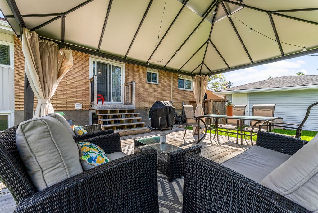 This cozy and well-maintained split-level home is nestled on a quiet street and sits on a spacious pie-shaped lot. Ideally located within walking distance to Orleans Mall and close to all amenities, this home offers both comfort and convenience. The upper level features 3 bedrooms and a full bathroom. The main floor boasts a bright, open-concept living and dining area, perfect for entertaining or relaxing. The lower level includes a large family room with laminate floors, a second full bathroom, and a combined laundry/storage room. Enjoy outdoor living on the expansive deck and gazebo, complete with a gas line for your BBQ, perfect for summer entertaining. The beautifully landscaped yard is perfect for gardeners, and the detached double garage provides ample space for parking and storage. Major updates include: newer windows throughout, mid-section and garage roof, durable metal roof, new siding, and a high-efficiency furnace for peace of mind. This home is move-in ready and located in a fantastic neighborhood...this home is a must-see!