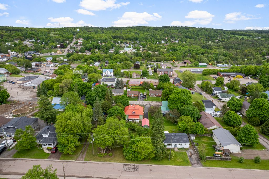 Craftsman style stucco and stone sided home with beautiful wood finishes and trim. This is a light filled stylish spacious four bedroom two bathroom home with original features and modern updates It is a home to be enjoyed and lived in with a double lot and gorgeous gardens. Over 200K in renovations in keeping with the character of the home. This kind of workmanship in a home is a rare find these days! Energy audit done and insulation added to attic and basement. This is a romantic home that speaks volumes if you would like main floor living with two bedrooms, laundry and bath, lounging by the propane fireplace reading a book or enjoying the outdoors with friends inside a fantastic screened in porch. In addition there two bedrooms/studio space on the second storey and a 2 pc bath that lends itself to multi family living. Established garden with fruit trees on double deep lot with frontage on two streets. Paved drive 2024 and car port with covered parking. Forced air propane furnace 2015, propane fireplace 2020 approx, wood stove 2007, screened porch 2022, stucco 2009, soffit and fascia and metal roof 2008, windows capped. Municipal water and sewer. 200 amp service. Close to parks, trails, shopping, restaurants, and services, a short walk from downtown Eganville and the Bonnechere river.