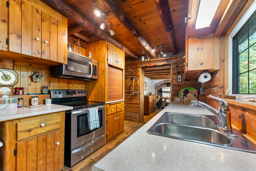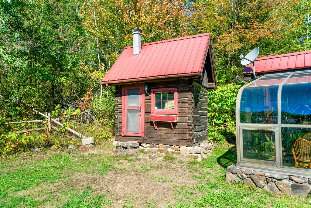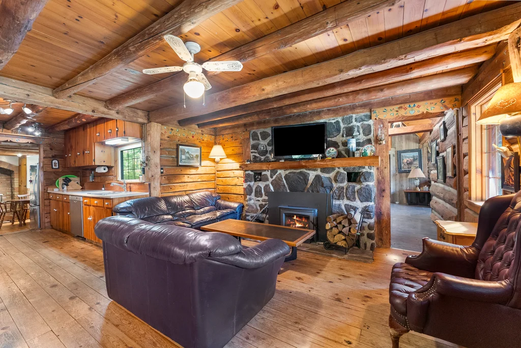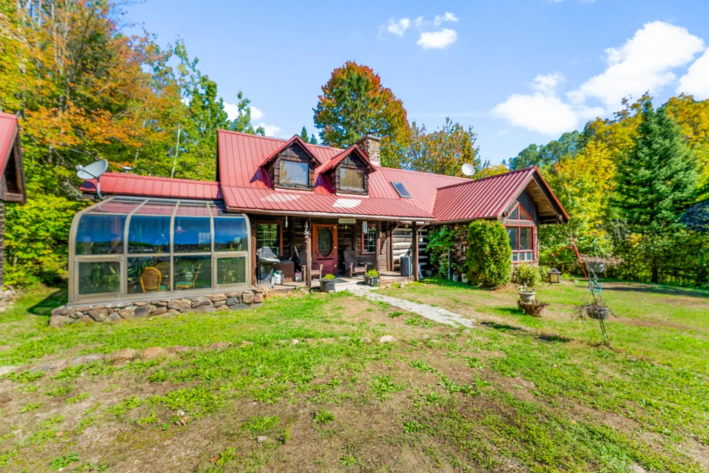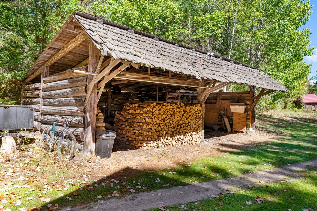 1.5 story log Home on 101 Acres with Sherwood River Frontage & Crown Land Access. This 3-bedroom log home offers 2,100 sq. ft. of living space on 101 acres with the Sherwood River and Jenkins Chute running through the property. Enjoy fishing, a refreshing swimming hole, and riverside enjoyment all on your own land. The acreage also provides excellent terrain for ATV and snowmobile trails, making it a true four-season retreat. The main floor features a primary bedroom with 2 piece ensuite, a 3-piece bath with laundry, and a living/dining room with a river-stone fireplace. The kitchen features an adjoining back kitchen with a high-end wood cookstove and oven. A solarium with heated stone floors and wood stove adds year-round comfort, while a second living room with skylight and large window brings in natural light. Upstairs, there are two bedrooms in separate wings, each with its own staircase and sitting/office area. Outbuildings include several log structures with electricity: a barn/garage with loft, a screened riverside gazebo, a bunkie, and a cold cellar built into the hillside, plus sheds. Across the road, 15 road-severed acres provide recreation today with potential to sell in the future. Additional features include two separate driveways along Paugh Lake Road, a garden along the main driveway, an artesian well, and acres of hardwood and softwood across the river with income potential. Being sold as-is, where-is.