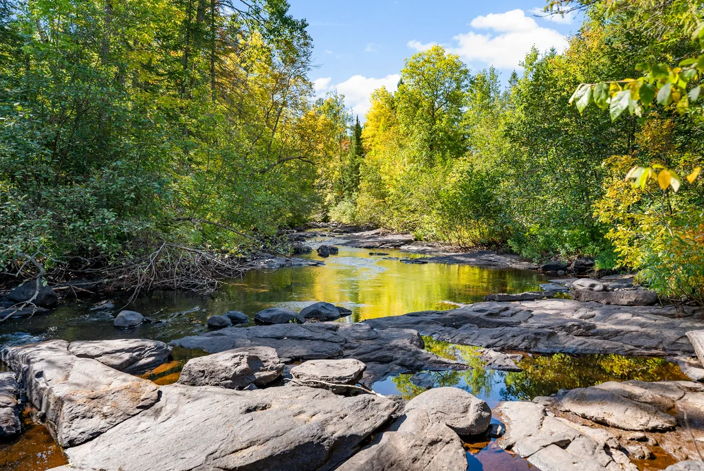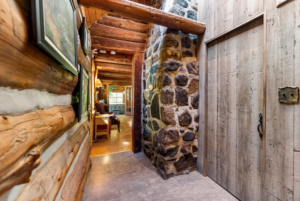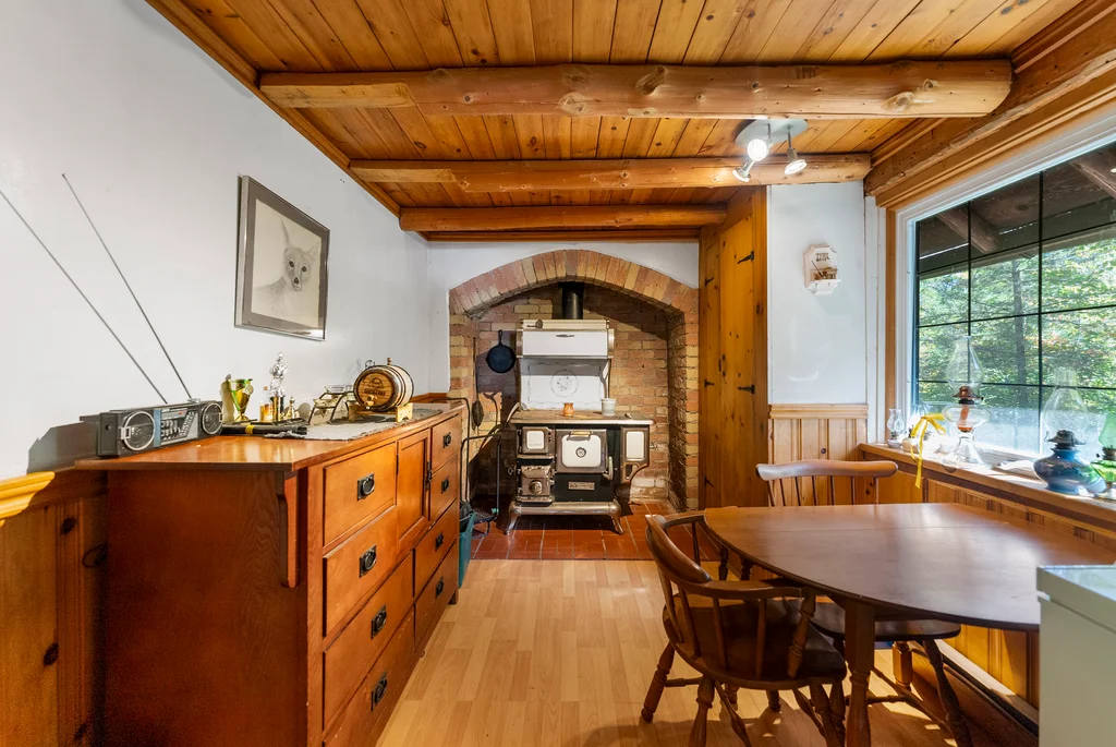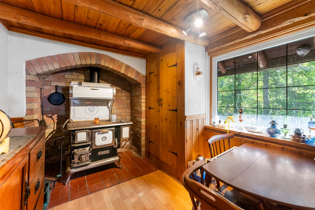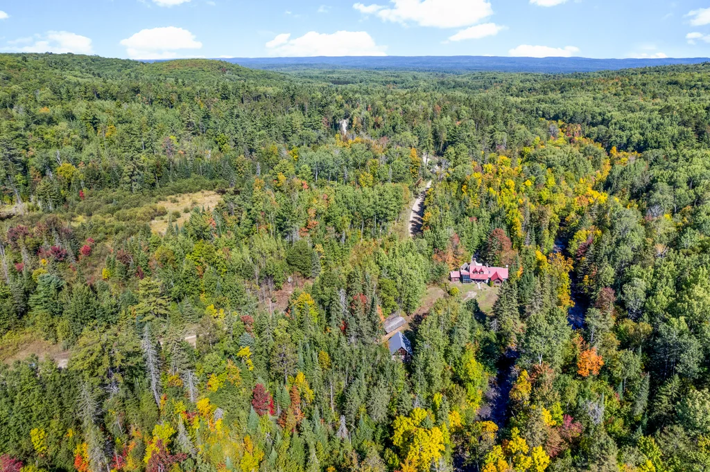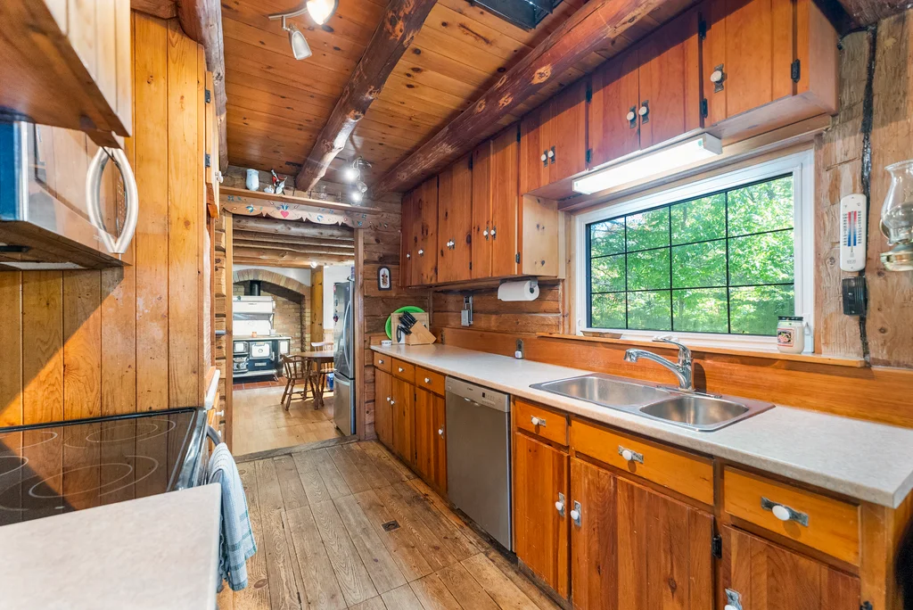 1.5 story log Home on 101 Acres with Sherwood River Frontage & Crown Land Access. This 3-bedroom log home offers 2,100 sq. ft. of living space on 101 acres with the Sherwood River and Jenkins Chute running through the property. Enjoy fishing, a refreshing swimming hole, and riverside enjoyment all on your own land. The acreage also provides excellent terrain for ATV and snowmobile trails, making it a true four-season retreat. The main floor features a primary bedroom with 2 piece ensuite, a 3-piece bath with laundry, and a living/dining room with a river-stone fireplace. The kitchen features an adjoining back kitchen with a high-end wood cookstove and oven. A solarium with heated stone floors and wood stove adds year-round comfort, while a second living room with skylight and large window brings in natural light. Upstairs, there are two bedrooms in separate wings, each with its own staircase and sitting/office area. Outbuildings include several log structures with electricity: a barn/garage with loft, a screened riverside gazebo, a bunkie, and a cold cellar built into the hillside, plus sheds. Across the road, 15 road-severed acres provide recreation today with potential to sell in the future. Additional features include two separate driveways along Paugh Lake Road, a garden along the main driveway, an artesian well, and acres of hardwood and softwood across the river with income potential. Being sold as-is, where-is.