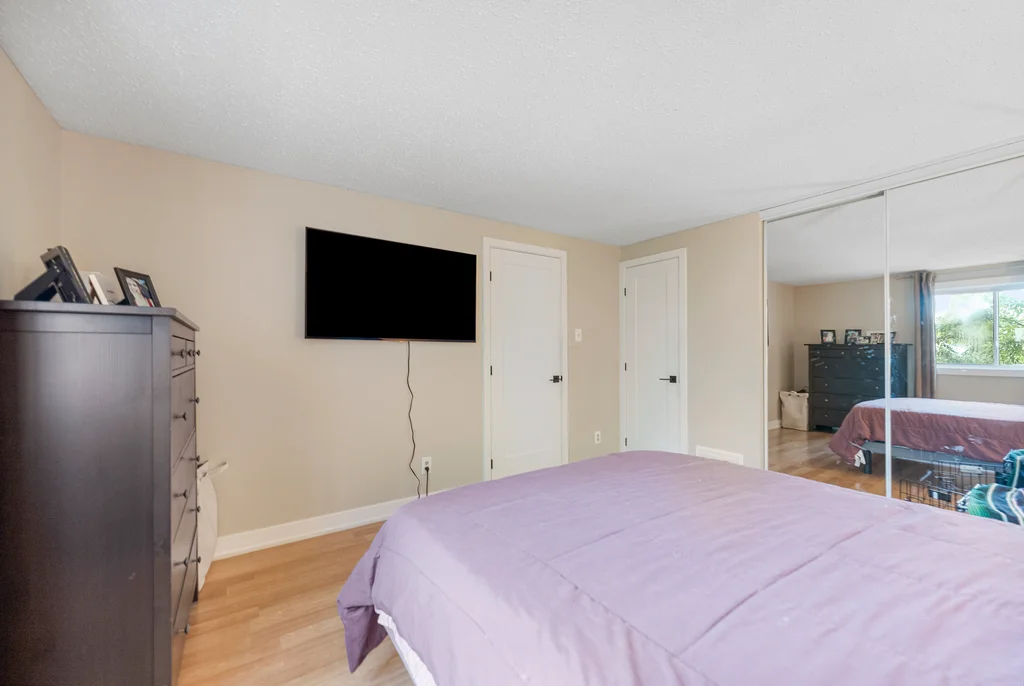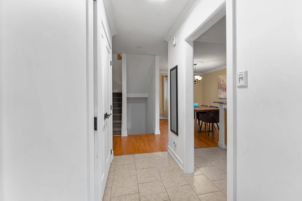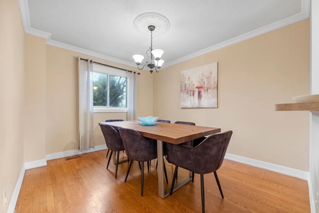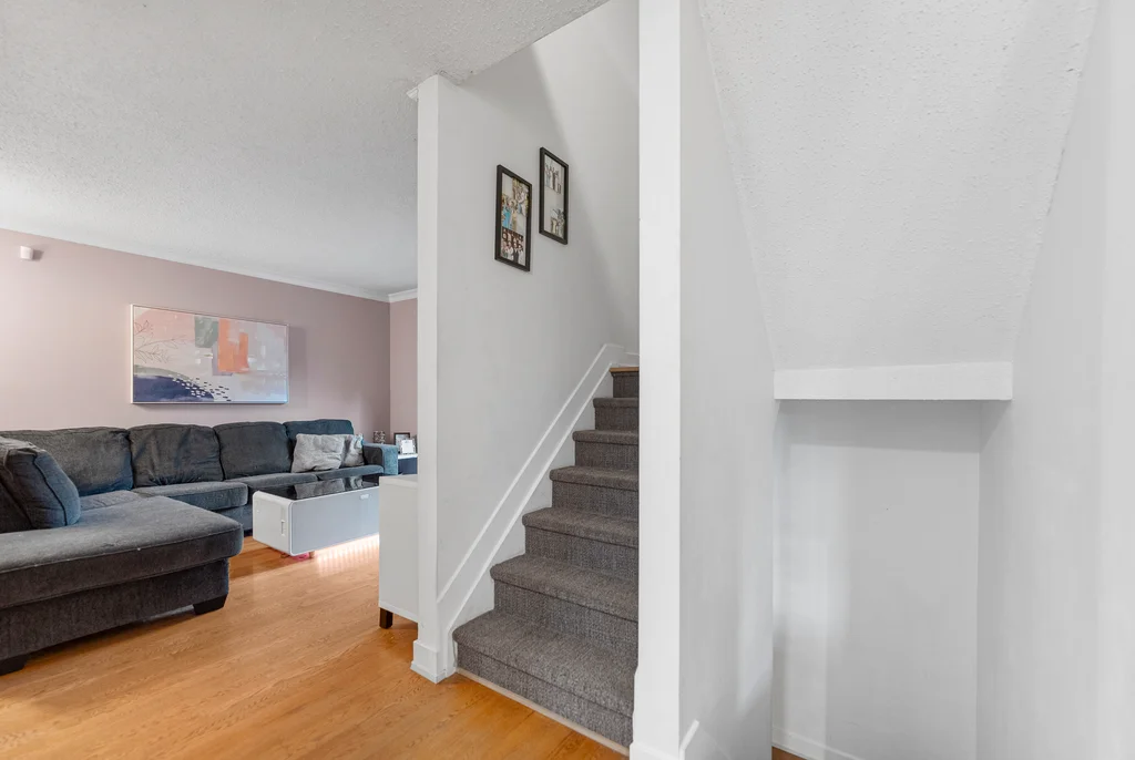 Are you a first time homebuyer or investor? This 3-bedroom home offers a practical layout designed for everyday living. The main level features an updated, functional kitchen with ample storage and workspace; separated from a large dining room with a breakfast bar! The living room is perfectly set off the kitchen/dining space with access to the private backyard. For convenience a powder room completes the main level! Three bedrooms on the second level are generously sized, with the primary bedroom offering a cheater ensuite and separate vanity making it a 5 piece bathroom, a great layout! The lower level extends the living space with a family/games room including wall to wall built-in bookcases, and gas fireplace. The laundry room is nicely separated and includes ample storage. Updates include modern doors, sleek trim, and tasteful laminate and tile throughout with newer carpet on the staircases. Patio doors lead to a deep, private yard with a two tier hardscape patio for easy maintenance providing beautiful entertainment space to enjoy the outdoors. Not only a large private backyard, but this home is across from a park, close to all amenities and public transit for convenience! This property combines comfort, functionality, and accessibility in one package!