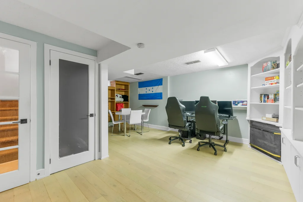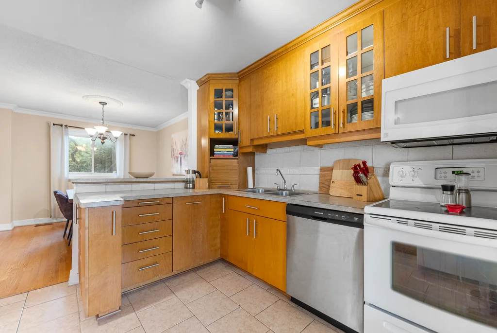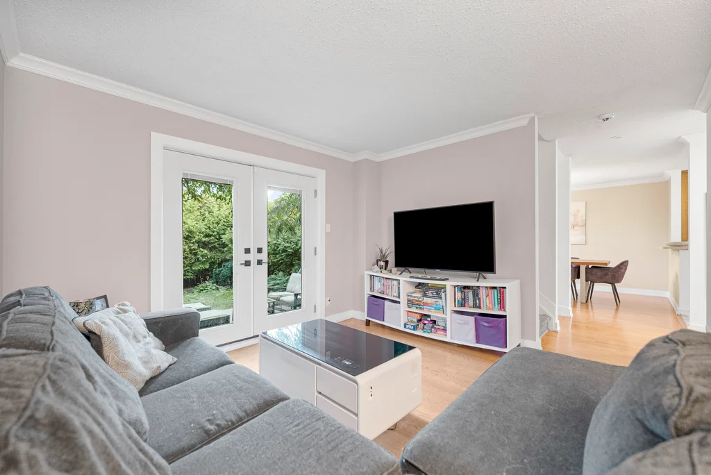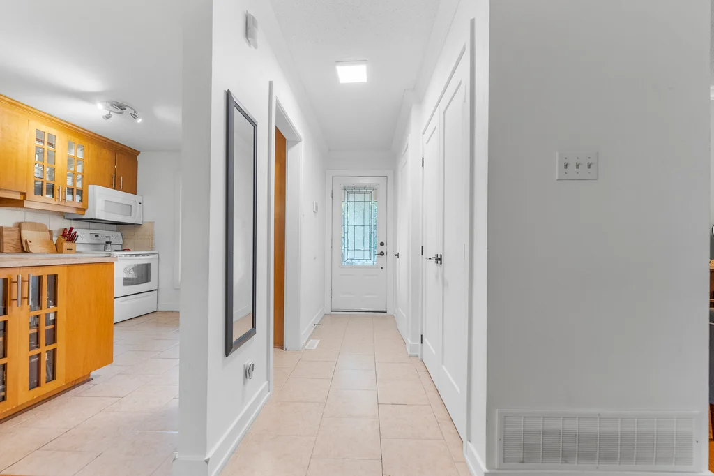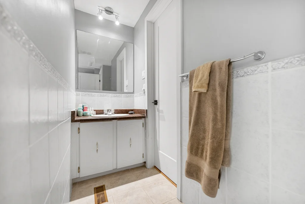 Are you a first time homebuyer or investor? This 3-bedroom home offers a practical layout designed for everyday living. The main level features an updated, functional kitchen with ample storage and workspace; separated from a large dining room with a breakfast bar! The living room is perfectly set off the kitchen/dining space with access to the private backyard. For convenience a powder room completes the main level! Three bedrooms on the second level are generously sized, with the primary bedroom offering a cheater ensuite and separate vanity making it a 5 piece bathroom, a great layout! The lower level extends the living space with a family/games room including wall to wall built-in bookcases, and gas fireplace. The laundry room is nicely separated and includes ample storage. Updates include modern doors, sleek trim, and tasteful laminate and tile throughout with newer carpet on the staircases. Patio doors lead to a deep, private yard with a two tier hardscape patio for easy maintenance providing beautiful entertainment space to enjoy the outdoors. Not only a large private backyard, but this home is across from a park, close to all amenities and public transit for convenience! This property combines comfort, functionality, and accessibility in one package!