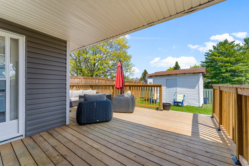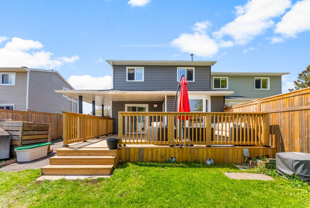 Versatile Living with In-Law Suite Potential Backing onto a Park with No Rear Neighbours! Perfect for multigenerational living or those in need of extra space, this well-maintained home offers a separate entrance to the lower level making it ideal for a future in-law suite. The main floor welcomes you with a bright and functional layout featuring a formal living room with a cozy fireplace and a dining area that overlooks the backyard. The spacious eat-in kitchen offers plenty of cupboard and counter space with patio doors leading to a large deck - perfect for summer BBQs or relaxing evenings outdoors. Upstairs, you'll find three generously sized bedrooms, each with ample closet space and a full bathroom that completes this level. The lower level offers fantastic flexibility, featuring a bedroom, 2-piece bathroom including a glass enclosed shower stall, a kitchenette and a recreational space. Whether you're accommodating extended family, creating a private guest area or exploring rental potential. Outside, enjoy a fully fenced backyard with a storage shed and garden areas. You're just steps away from a vibrant park with a playground, splash pad, dog park and scenic walking trails. Conveniently located close to schools, churches, shopping and dining. This home blends comfort, flexibility and location into one perfect package. Don't miss this incredible opportunity for space, privacy and potential all in one welcoming home!