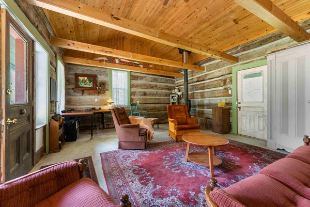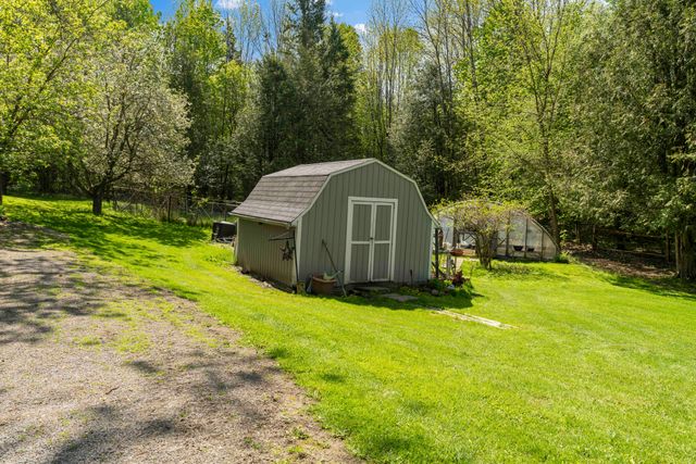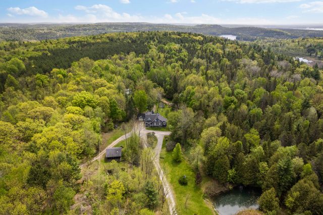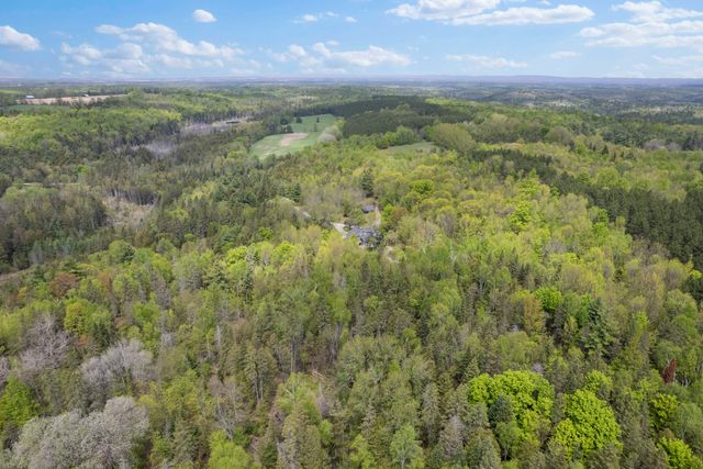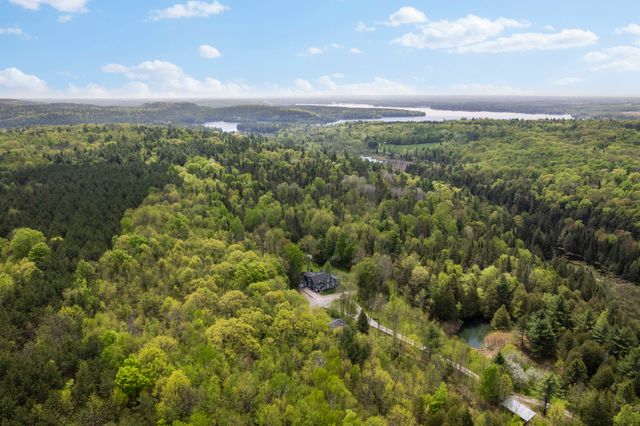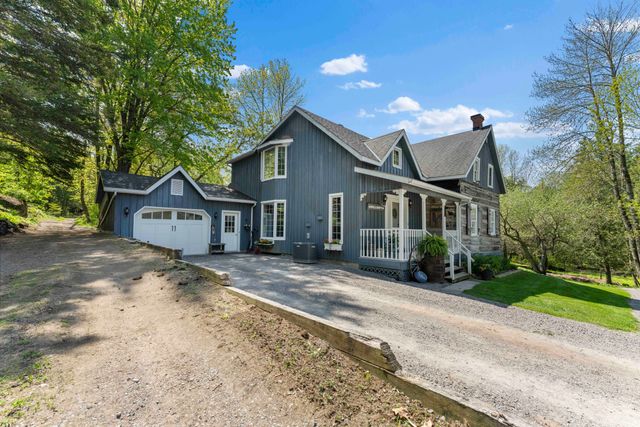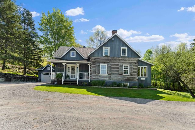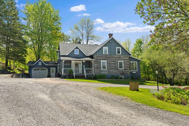 Welcome to this exquisite property! This meticulously maintained Custom log home, nestled on a sprawling 100-acres property, offers the perfect blend of tranquility and convenience. With 5 bedroom and 4 bathrooms, there is ample space for a large family or guests. As you enter, you'll be captivated by the grand staircase that leads to the upper levels. The main floor features a sun room, allowing you to enjoy the beauty of the surrounding nature with apple trees all year round. the covered porch provides a cozy spot to relax and take in the scenic views. The home boast a custom eat in kitchen with an extra cook stove, perfect for the culinary enthusiast. The finished lower level offer a walk out and provides additional living space for various activities. Outside, you'll find an attached 1-bay garage and a 4-bay drive shed, offering plenty of storage for vehicles and equipment. A cabin and a screened room provide additional spaces to unwind and appreciate the serene surroundings. The property offers a mix of fields,maple bush, pine plantation with managed forest, a pond, ensuring there is something for everyone. Privacy is abundant, making it a hidden gem that is conveniently located for commuters. A circular driveway allows for easy access and adds to the curb appeal.For those with a green thumb, there are gardens, a greenhouse, and even a chicken coop, providing the opportunity to cultivate you own fresh produce. Trails throughout the property invite exploration and outdoor activities. This property truly offer a unique lifestyle, combining the beauty of nature with modern living amenities. Don't miss out on the opportunity to make this exceptional property your own!