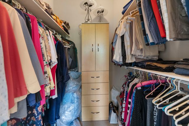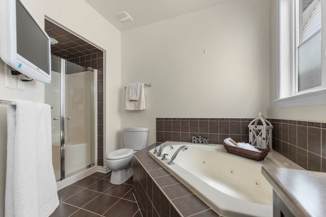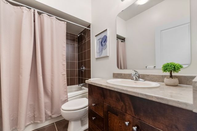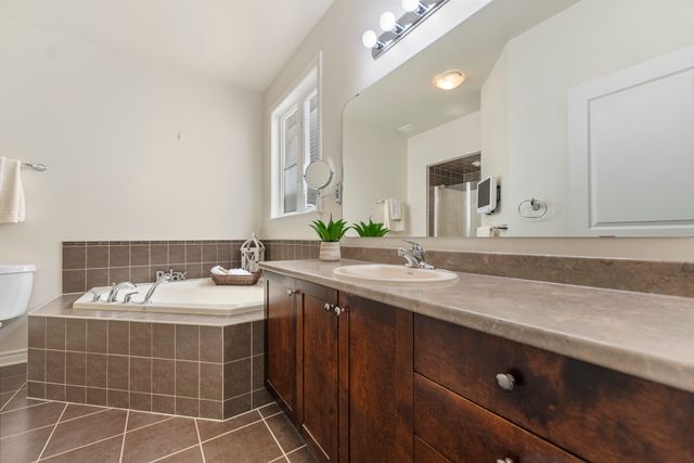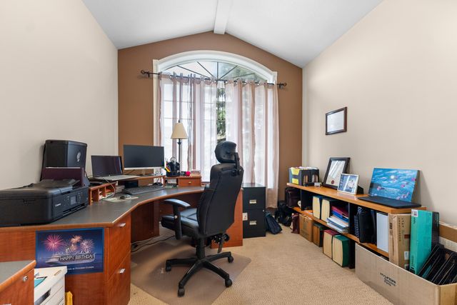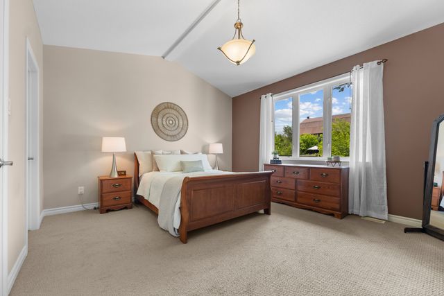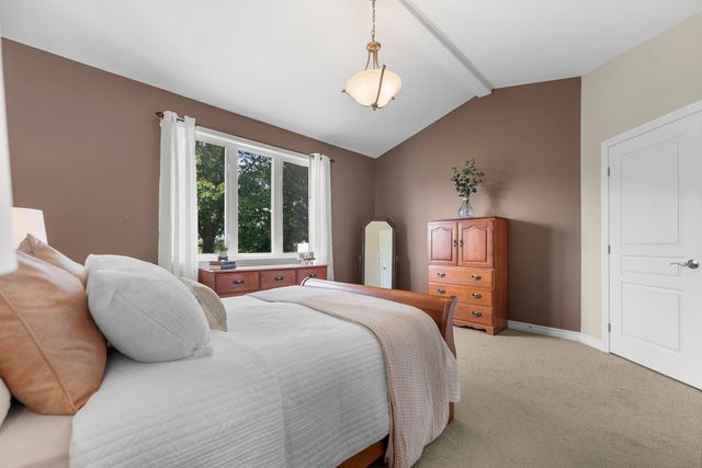 The bright & airy primary suite features vaulted ceilings, backyard views, ensuite w/separate tub & walk-in closet.