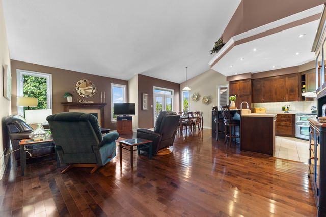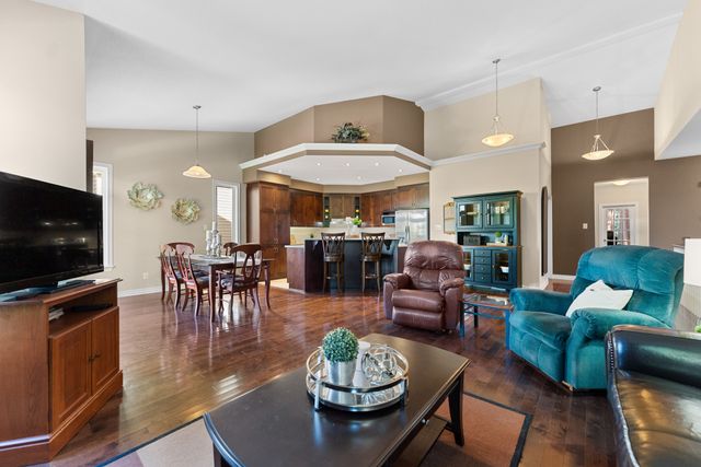 Revel in the grand open-concept design w/high cathedral ceilings & abundant natural light. The spacious great room is perfect for making memories w/friends & family offering a cozy gas fireplace, large dining area & chef's kitchen complete w/ample cabinetry, S/S appliances & huge island w/breakfast bar.