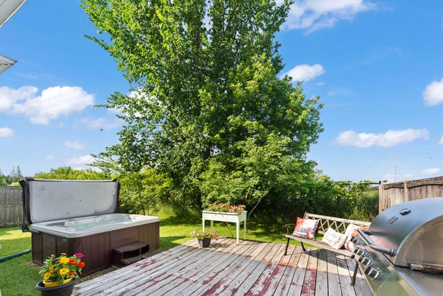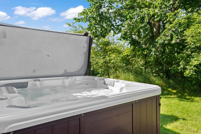 Beautiful French doors lead to your private backyard oasis w/hot tub overlooking peaceful farmland.