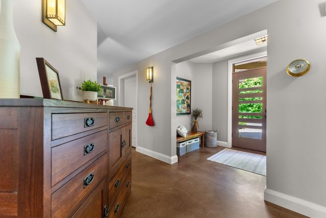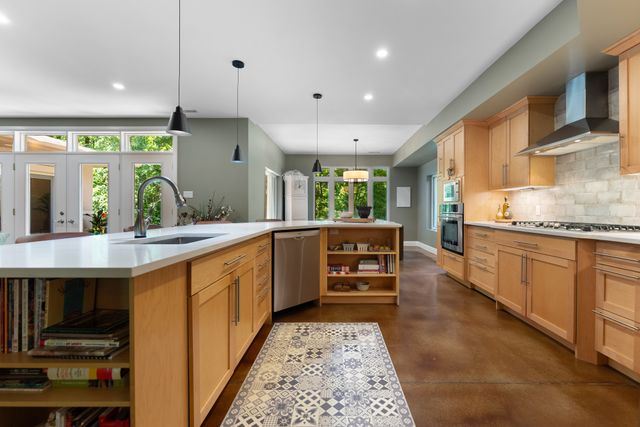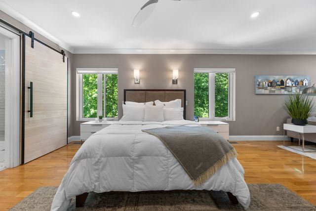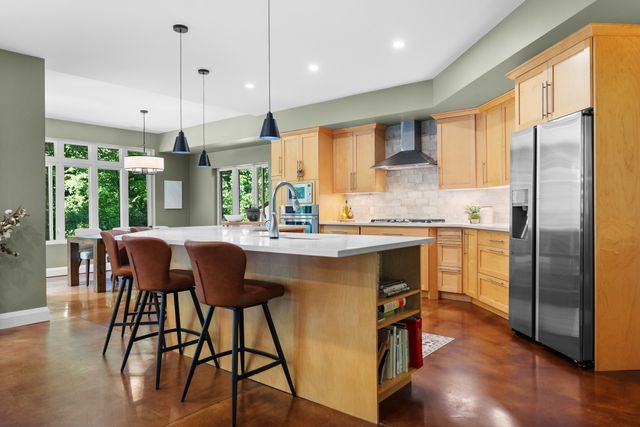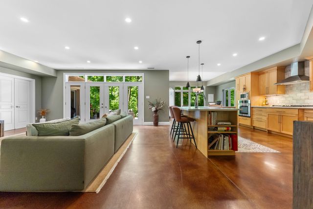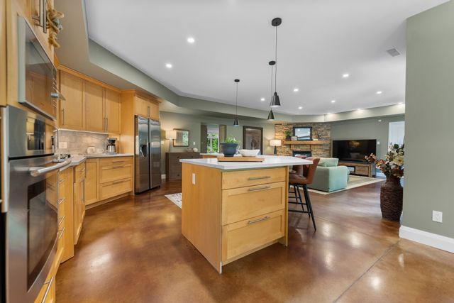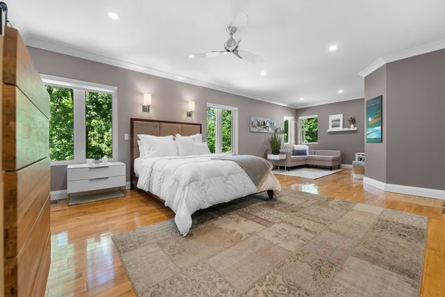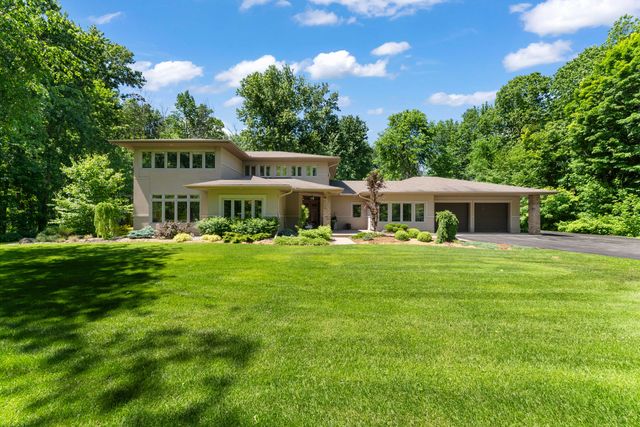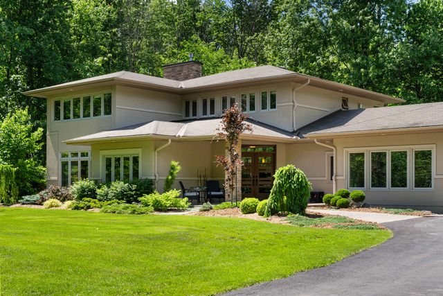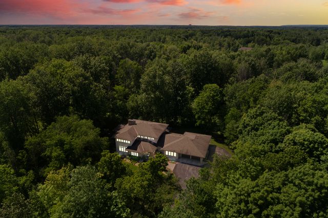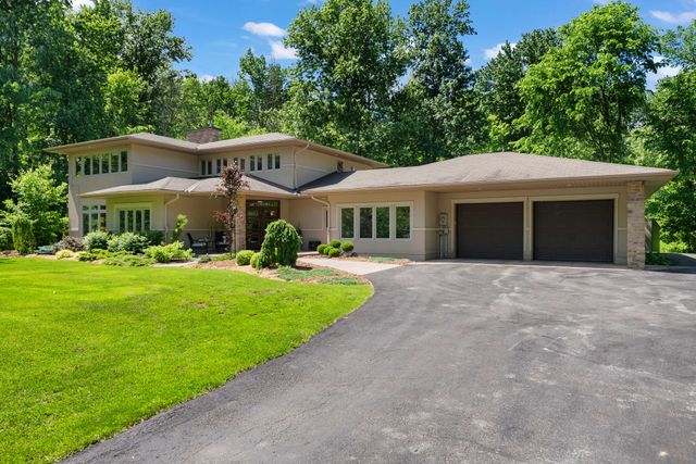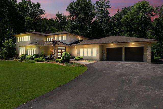 Welcome to 5759 Queenscourt Crescent in Manotick’s sought-after Rideau Forest. This 2006 Prairie-Style home offers 4600+ sq ft with 5 bedrooms, 4 bathrooms, and a 3-car garage on a private 4.4-acre lot. Enjoy energy-efficient ICF construction, heated polished concrete floors, and a warm, timeless design. The open-concept kitchen features custom cabinetry, quartz counters, and a large island. A main-floor in-law suite offers flexible living. Expansive windows bring in natural light and scenic views. Upstairs: a spacious primary suite with fireplace, ensuite, and walk-in closet, plus a 4th bath, an additional bedroom, and a large office.