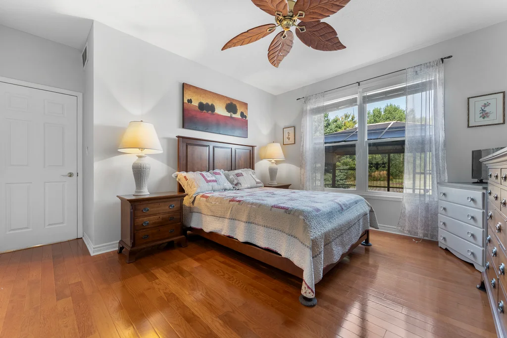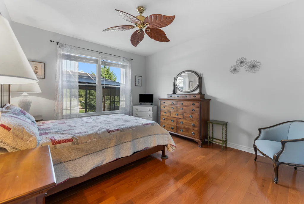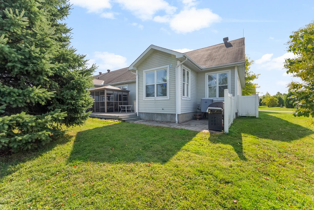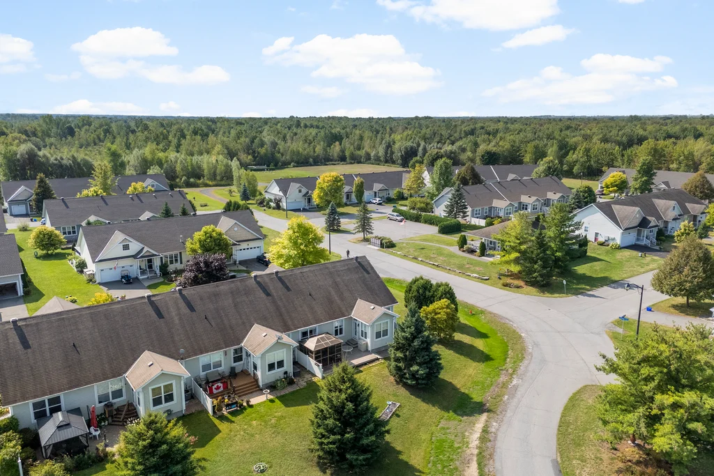Welcome to Anderson Park, an exclusive 50+ adult lifestyle community offering the perfect blend of comfort, privacy and connection. This well-managed life lease condo development allows a maximum of two occupants per unit, with at least one resident aged 50+ and includes a 1/49th interest in the property. This bright and spacious end-unit bungalow on a desirable corner lot is filled with natural light and designed for ease of living. The open-concept layout features gleaming hardwood floors, a generous living and dining area and a well-appointed kitchen with an eating nook. A cozy sunroom overlooks the private deck perfect for morning coffee or entertaining guests. The home offers two bedrooms and two full bathrooms, including a primary retreat with its own private en-suite. The partially finished basement provides extra flexibility, ideal for a recreation room, hobby area or additional storage. The double car garage adds ample space for vehicles, tools and seasonal items. Enjoy a low-maintenance lifestyle with a monthly occupancy fee that covers grass cutting, snow removal (including personal driveway and walkway), exterior maintenance, property management, the Corporation's asset insurance and access to recreational facilities. Residents benefit from a welcoming, community-focused atmosphere with access to an on-site clubhouse and activity centre, as well as, garden plots for those who enjoy gardening. Stroll the landscaped grounds and walking paths, all while being just 15 minutes to downtown Ottawa, Orleans, and Findlay Creek, with shopping, healthcare and golf all nearby. This is a rare opportunity to enjoy peaceful, connected living in the Anderson Park community designed for your next chapter.