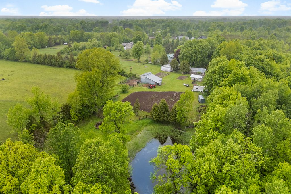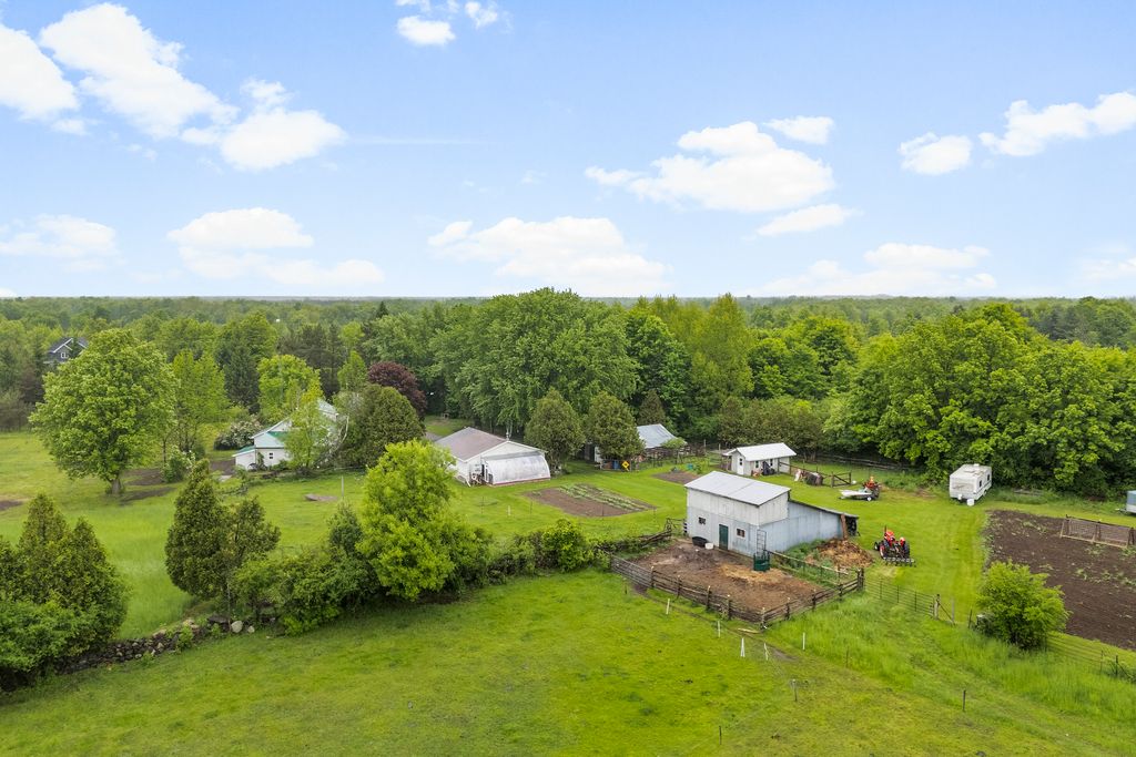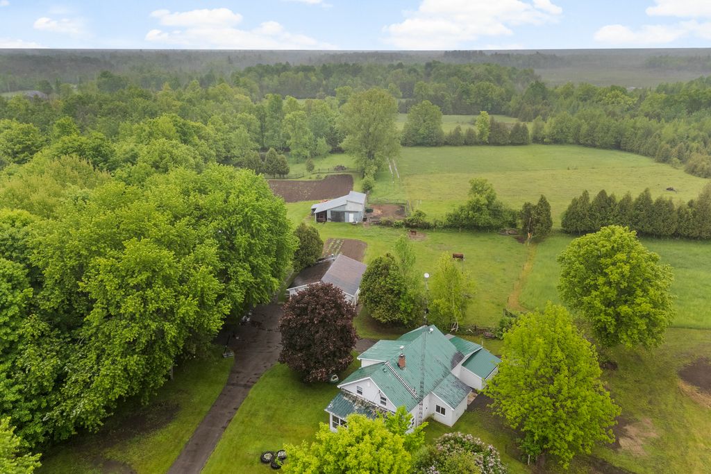 Hobby Farmers, Homesteaders this 30+ acre property is beaconing you! Tucked privately in the trees & set off the road sits this 3 bedroom, 2 bath practical home where your self-sufficient dreams take root! A side entry/mudroom (with access to an oversized attached garage) opens into a welcoming country kitchen and dining area. A sitting room with efficient woodstove centrally located opens to a living/family room. The living space is interchangeable and flows from room to room for efficiency! Laundry room with access to front & backyard, utility room and an oversized 4 piece bath finish the main level! Bonus is a 3 season sunroom along the front of the house to enjoy summer evenings! The second level offers neutral tones in both paint & flooring has a loft for yoga, office space, or kids playroom and opens to 2 good sized bedrooms. The primary suite is oversized and includes a walk in closet. A new 3pc. bath with charming claw foot tub serves this level. Off the attached garage an oversized walk in cold storage was added, perfect for the market gardener; a greenhouse attached to the detached garage compliments this venture. The property has so much to offer; an oversized double insulated garage, set up for the family mechanic (equipment available for sale). There is a 40' x 40' barn with hydro, used for storage, a second barn with hydro & water presently with 1 box stall, hay storage, & a cattle coral attached. Recently added new chicken coup with fenced run. Grazing pastures & paddocks fenced, a pond for summer irrigation & a winter skating rink. If market gardening is your passion there is an oversized vegetable garden awaiting! Recently seeded hay fields for your livestock, but there is more! A sugar shack was built adjacent to the 10 acre hardwood bush at the edge of the hay fields, tucked away from the house overlooking the property. This property is a rare find, don't miss this opportunity to embrace a more self-reliant and rewarding lifestyle!